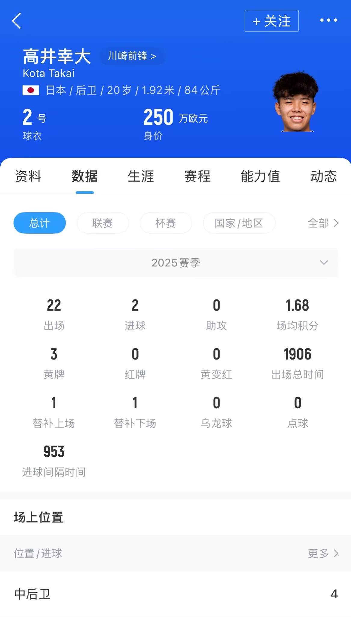 今年亚冠精英联赛半决赛,利雅得胜利主场2-3不敌川崎前锋无缘决赛,高井幸大出任首发中卫踢满全场。